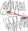 ![]() | Zur schnellen Erweiterung des Oberkiefers eignet sich eine "Hyrax-Schraube", die fest an den Zähnen befestigt ist. |