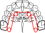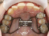 ![]() | Erweiterung des Oberkiefers mit einer an den großen Backenzähnen verankerten Feder (sog. Quad-Helix). |